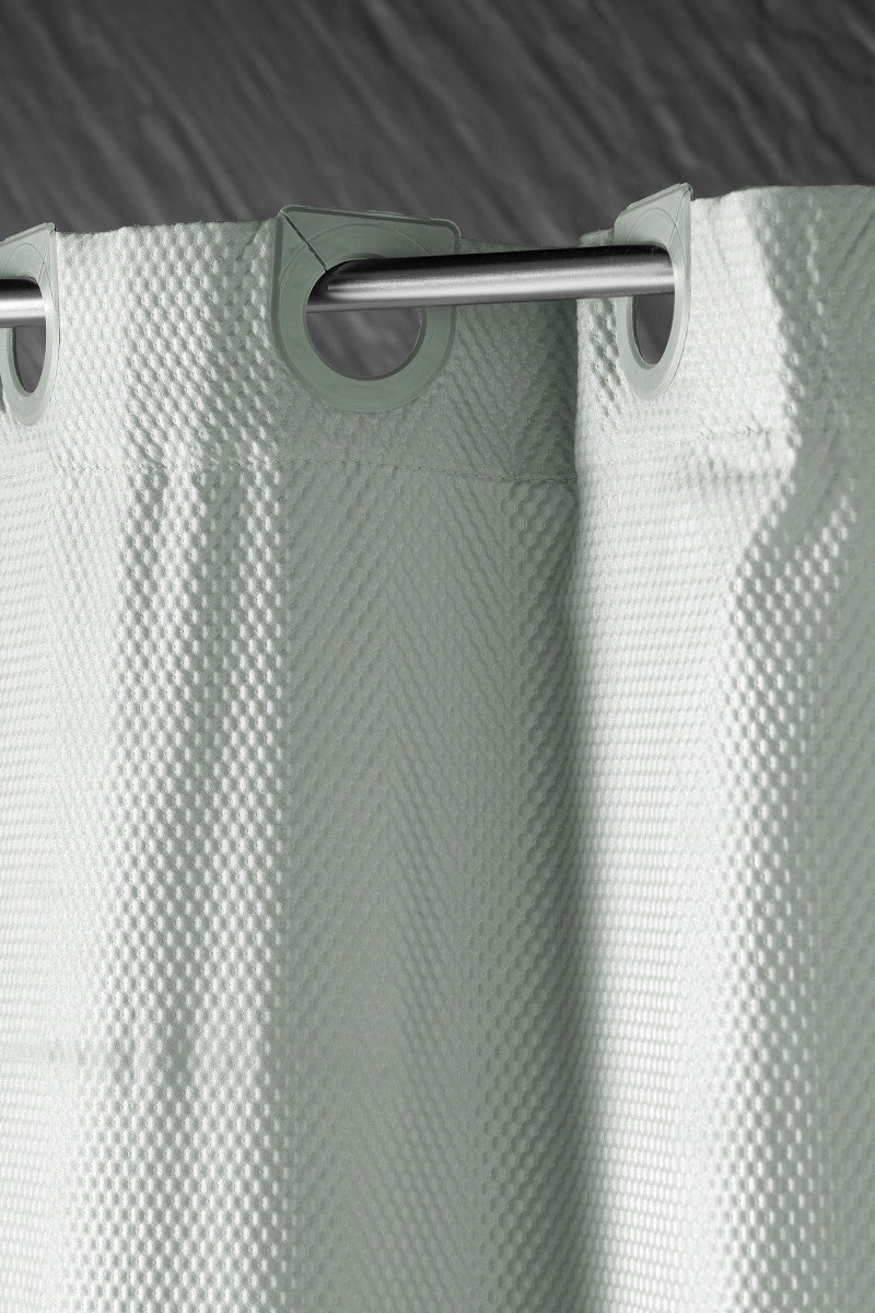 • Badeforhænget har integreret øjer