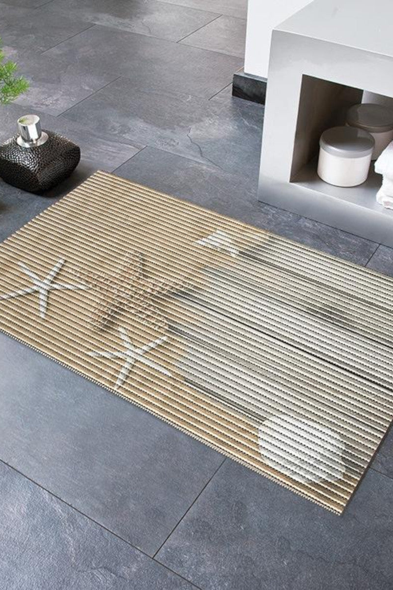 Giv dit badeværelse et frisk og stilfuldt udseende med denne smukke bademåtte med søstjernemotiv. Måtten måler 80x48 cm, hvilket gør den perfekt til både små og store badeværelser.