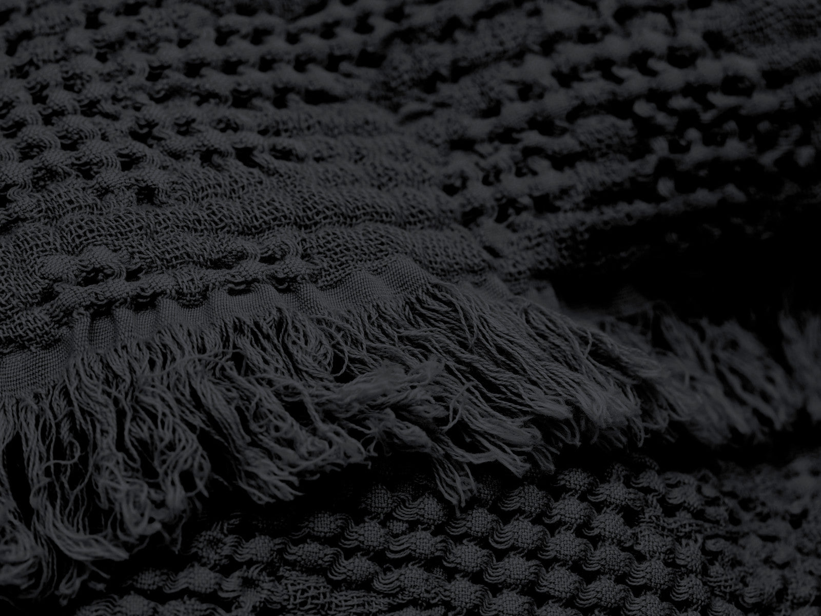 Pynt din seng med det perfekte sengetæppe. Hilda-designet har en dyb, næsten sort farve, der skiller sig ud. Men når du kigger nærmere, vil du blive overrasket over designet. Vaffelmønsteret er vævet på en jacquardvæv, hvilket giver dig et blødt og luksuriøst tæppe med en fin balance mellem afslappet og fine detaljer. Brug Hilda som sengetæppe eller som et behageligt tæppe til sofaen. Sammen med byNORD sengetøjet vil Hilda give dit soveværelse en afslappende og behagelig atmosfære.