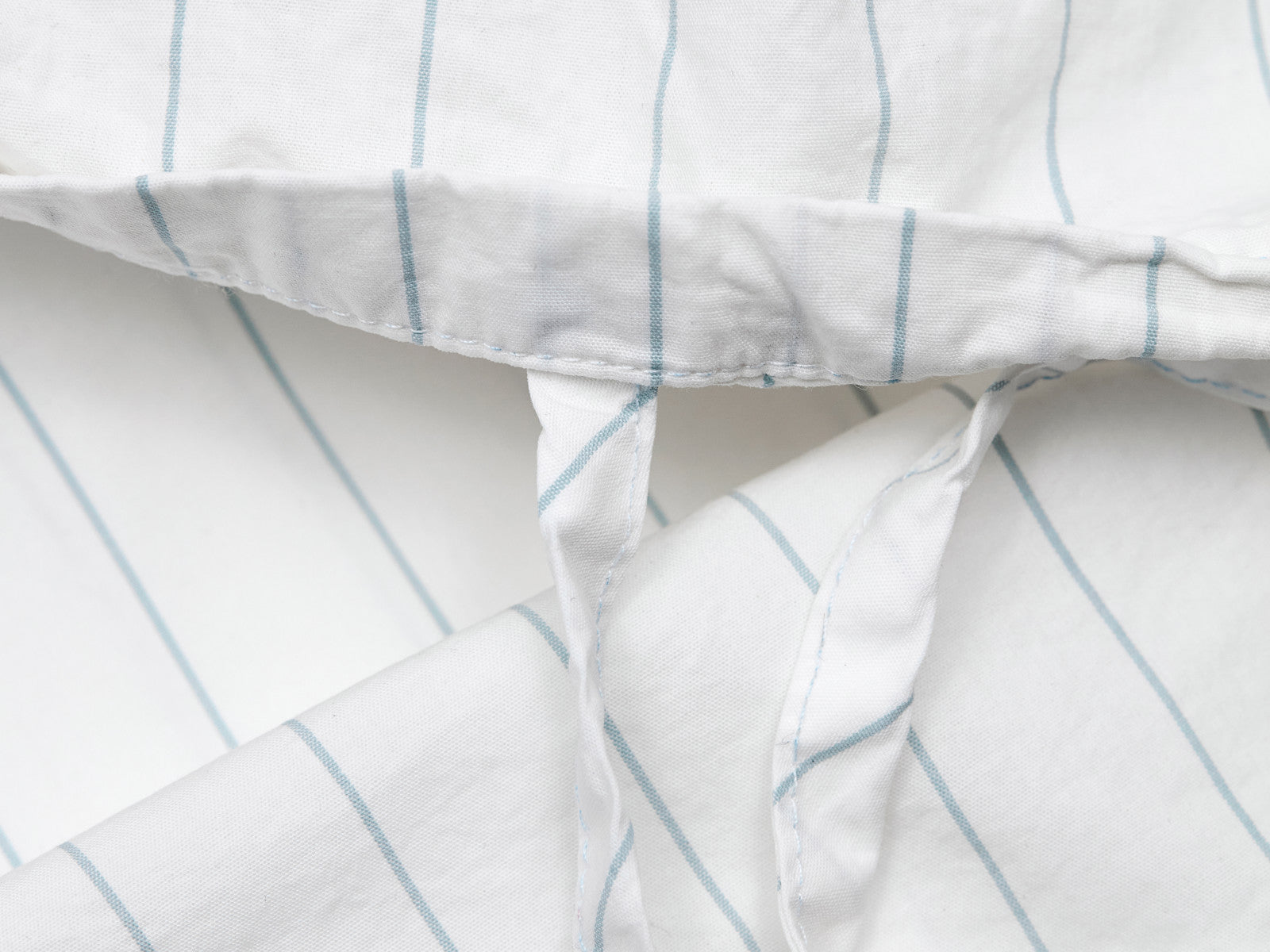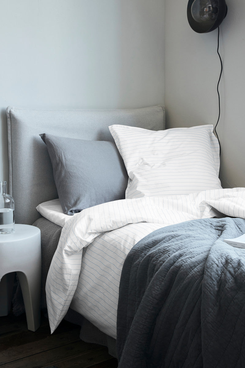 Forkæl dig selv med luksuriøst sengetøj, der både er åndbart og sprødt. Sengesættet Dagny er designet med hvide og blågrå nålestriber, som giver en diskret detalje til dit soveværelse. Sættet består af et dynebetræk med kuvertlukning og bindebånd samt et pudebetræk med kuvertlukning, begge lavet af OEKO-TEX® 100 certificeret økologisk bomuld i en tæt percalevævning. Med dette sengesæt får du ikke kun lækkert sengetøj, men også holdbart sengetøj, som vil give dig mange års glæde. Stoffet er enzymvasket, hvilket gør det endnu blødere og giver det en mat finish. Med sengesættet fra byNORD kan du se frem til en fredfyldt søvn i et afslappet soveværelse.
