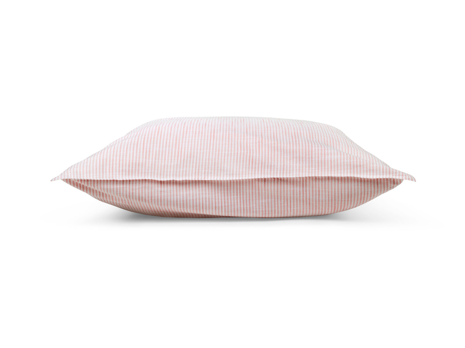 Hos JUNA kan du få løse pudebetræk til din ekstra hovedpude. Monochrome serien er inspireret af naturens strukturer og vævet på en måde, der giver stoffet et råt og afslappet look. Tekstilet er lavet af slub bomuld, hvor tråden er snoet og skaber unikke ufuldkommenheder i stoffets struktur, som bringer farverne til live. I denne nye variant kombineres strukturen med en klassisk smal strib i rosafarvet og hvid. Pudebetrækket måler 63 x 60 cm og har en kuvertlukning. Monochrome pudebetræk er GOTS-certificeret, OEKO-TEX®-mærket og kan vaskes ved 60°. Mix og match Monochrome pudebetræk med andre JUNA sengesæt, såsom Pleasantly eller Bæk & Bølge, for at skabe den nordiske JUNA-stil. JUNA løse pudebetræk fås i en række forskellige farver og designs.