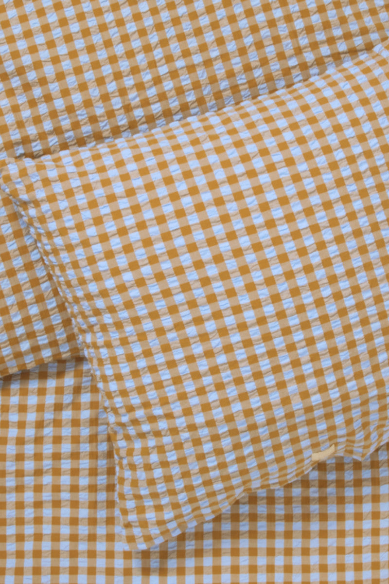 Få en følelse af ro med det bløde Bæk&Bølge-sengesæt fra JUNA i farvekombinationen lyseblå/sand. Det udstråler kølighed og ro, og minder om en kyststrækning, hvor sand og vand mødes i det kølige og elegante skandinaviske lys. Sættet er lavet af 100% økologisk bomuld, som både er OEKO-TEX®-mærket og GOTS-certificeret. Der medfølger to pudebetræk på 60x63 cm med kuvertlukning og et dynebetræk på 200x220 cm med knaplukning. Hvis du har flere forskellige sengesæt fra JUNA, kan du mixe og matche de forskellige farver og mønstre på kryds og tværs og skabe din helt egen stil. Sengesættet kan vaskes ved 60 grader, men for at skåne miljøet og bevare blødheden og kvaliteten i mange år fremover, anbefaler JUNA at vaske det ved 40 grader.