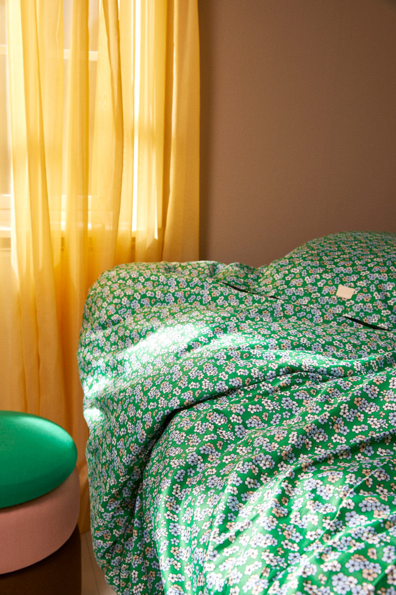 Få en følelse af at blive omfavnet af blomsterne på Pleasantly-sengetøjet, med den friske og indbydende grønne farve. Farven kan give dig en følelse af velvære og ro, når du smyger dig i det bløde sengetøj. Materialet er 100% økologisk bomuldssatin, som både er OEKO-TEX®-mærket og GOTS-certificeret, så du kan sove trygt og med god samvittighed. Sengesættet indeholder et pudebetræk på 60x63 cm og et dynebetræk på 140x220 cm, begge med lynlåslukning. Med forskellige farver og mønstre fra JUNA kan du blande og skabe din helt egen personlige stil. JUNA anbefaler at vaske sengesættet ved 40 grader for at bevare blødhed og kvalitet i mange år fremover, samtidig med at du skåner miljøet.