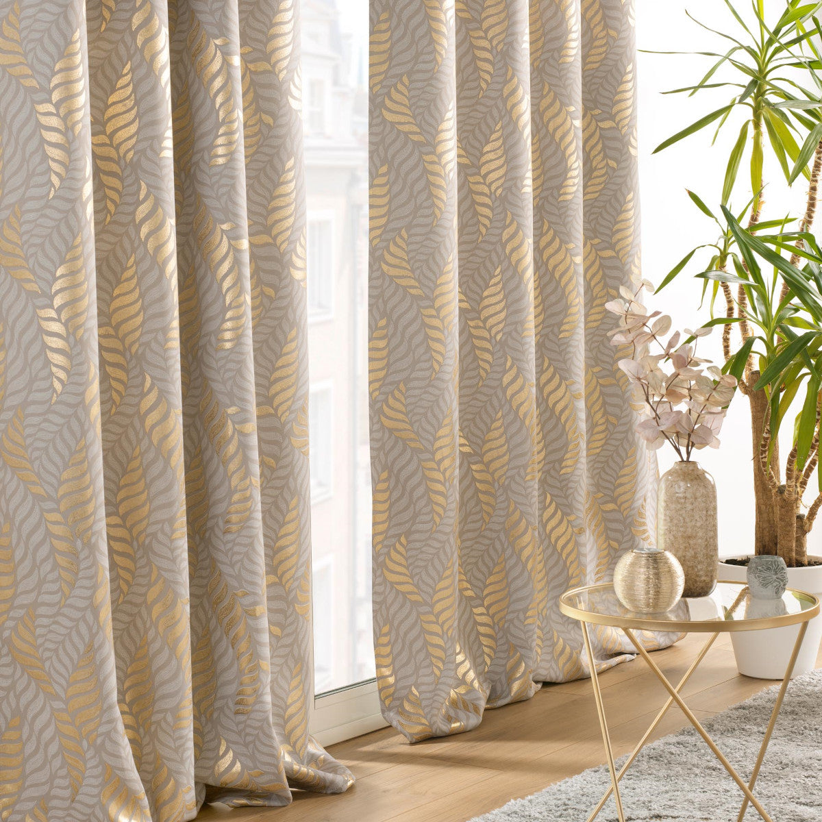 Douceur d'Intérieur har designet dette gardin med fokus på både æstetik og funktionalitet. Den bløde taupe-farve med gyldne detaljer tilføjer en følelse af luksus og elegance til ethvert rum, samtidig med at gardinet effektivt blokerer for lys og skaber en afslappet atmosfære.