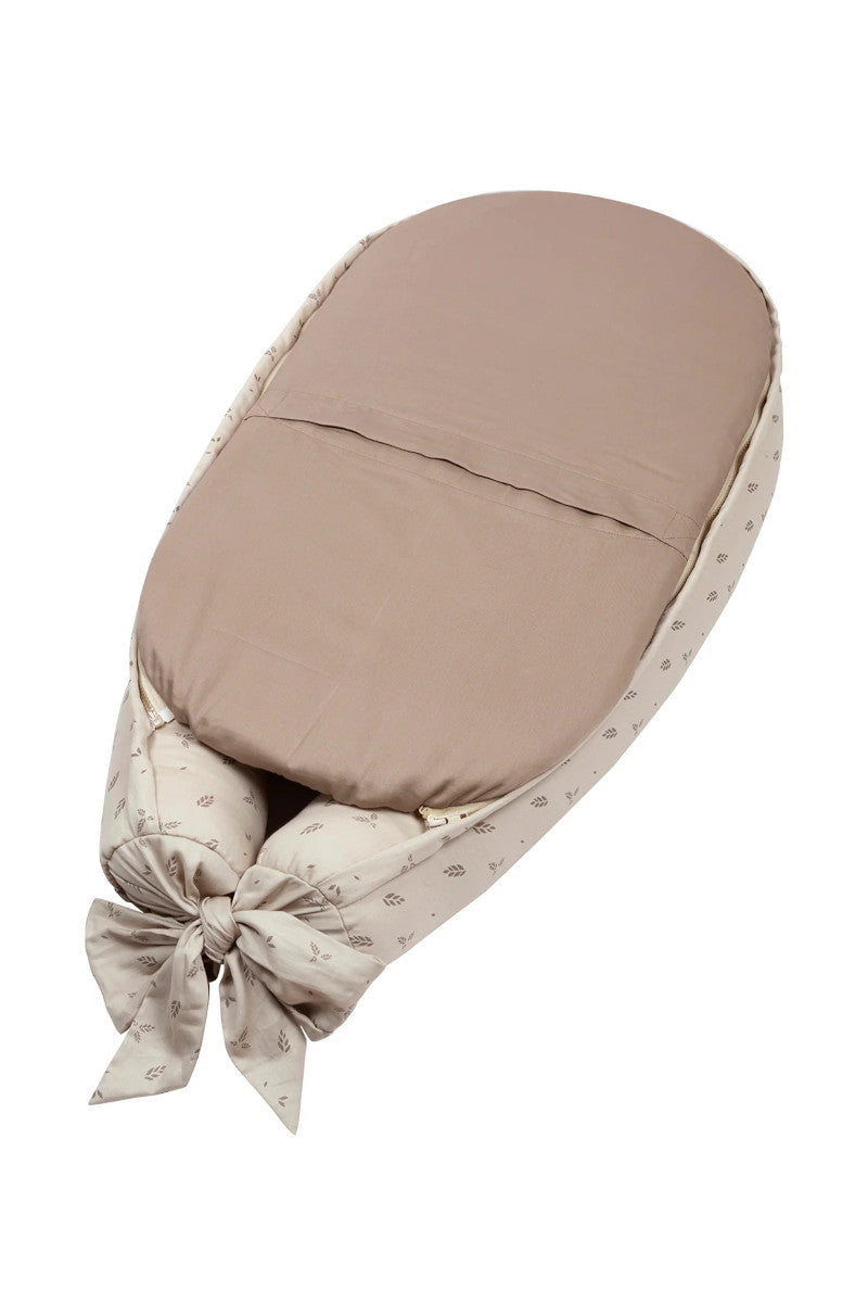 Babynesten er designet med høje kanter for at sikre, at barnet ikke falder ned fra fx en sofa.