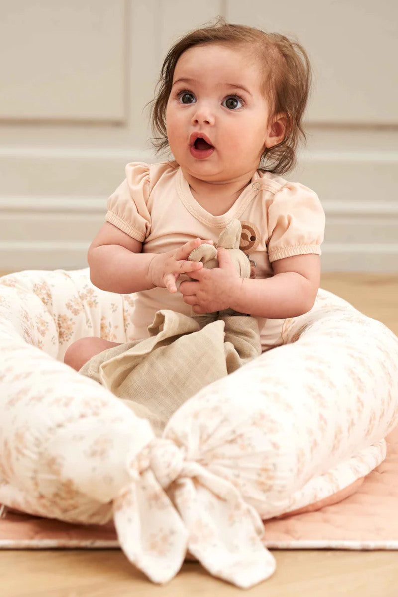 Babynesten er designet med høje kanter for at sikre, at barnet ikke falder ned fra fx en sofa.