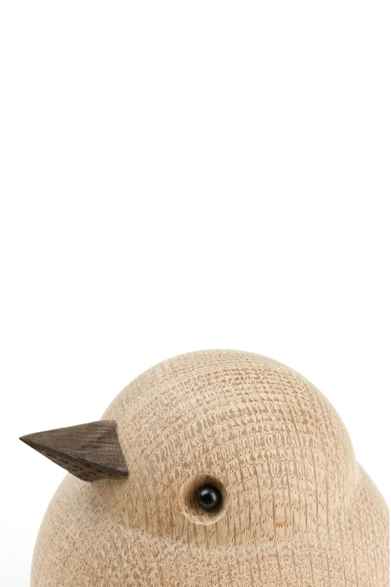 En gruppe dygtige trædrejere har skabt Spurvefamilien med omhu og sans for detaljer ved at håndfremstille den i massivt egetræ.