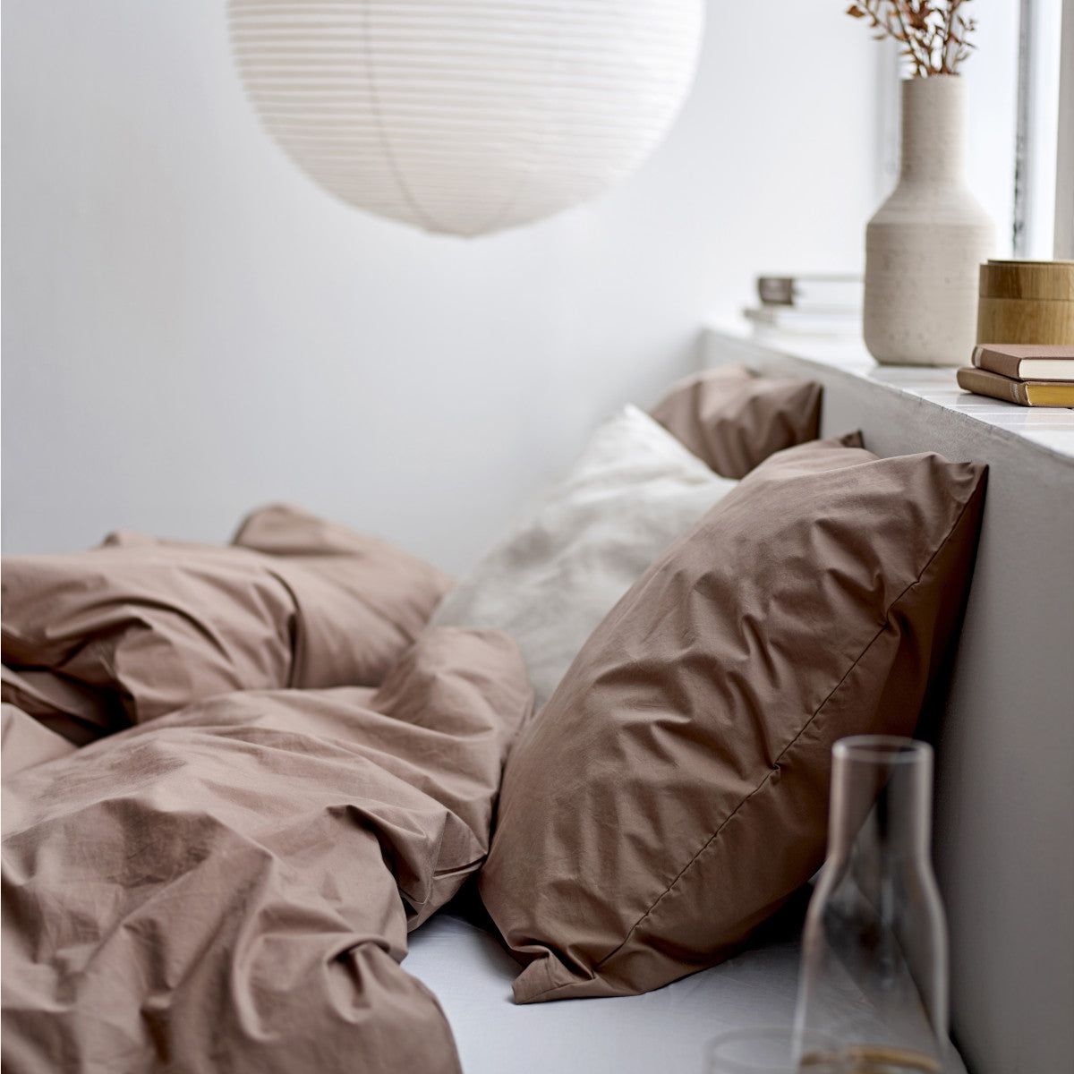 At lægge sig til at sove i det indbydende percale-sengesæt er en ren luksusoplevelse. Sættet er fremstillet i klassisk lærredsvævning, men med en højere trådtæthed og fine garner, hvilket resulterer i et særligt sprødt og tætvævet stof. Designet er minimalistisk uden overflødige detaljer, hvor fokus er på den smukke, ensfarvede kvalitet.